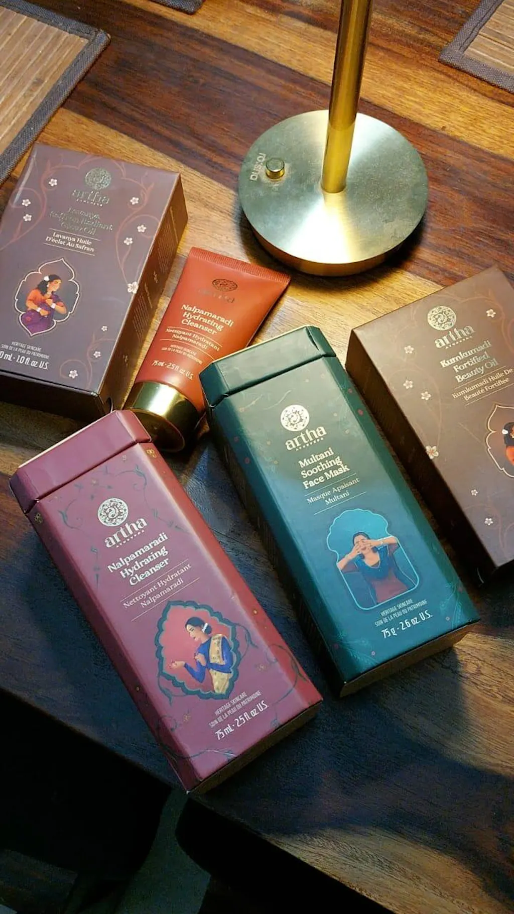 - Nalpamaradi Tailam: A classical Ayurvedic blend of four types of Ficus tree barks, turmeric, Triphala, and sandalwood that brightens, calms, and evens skin tone.